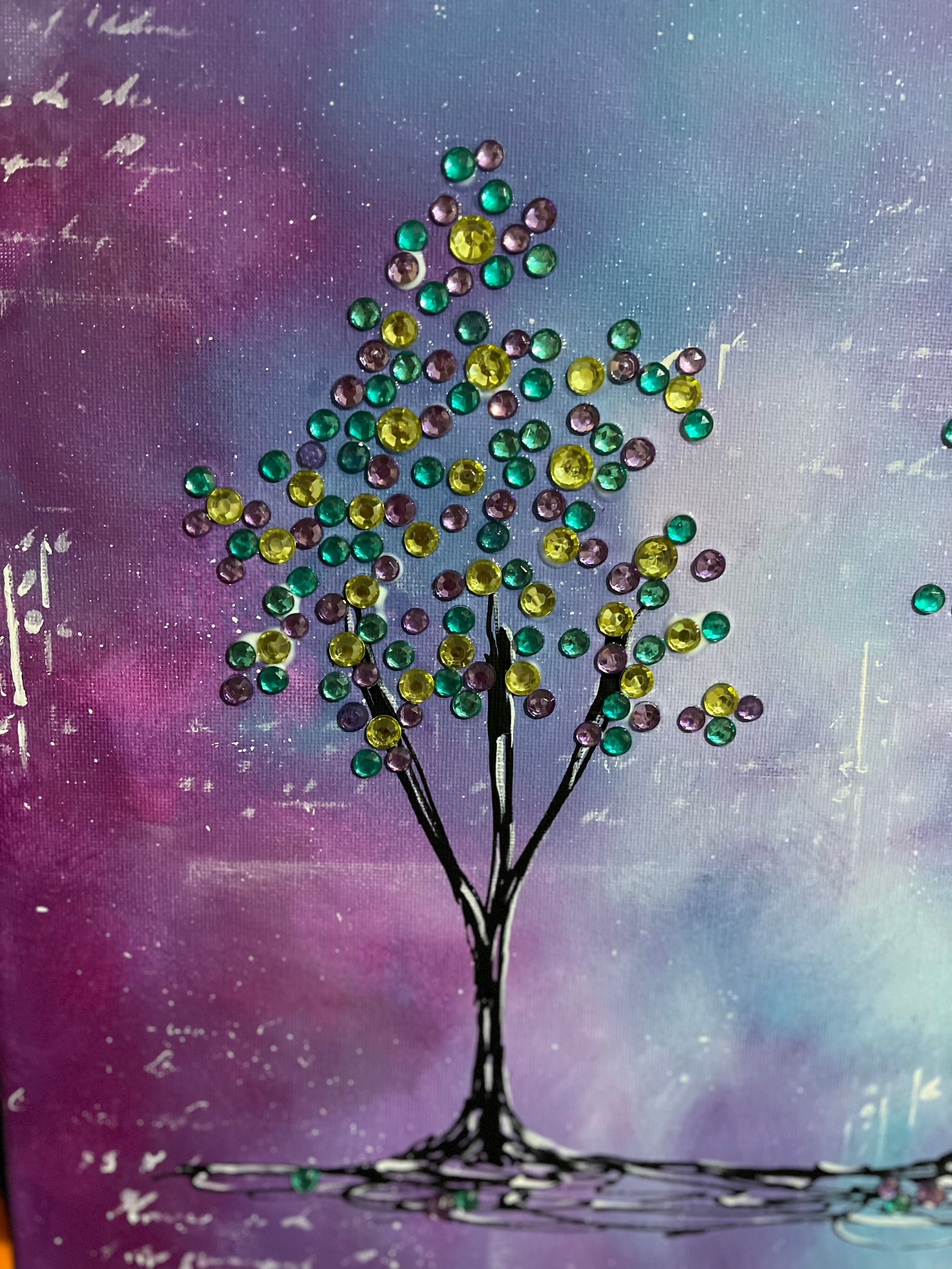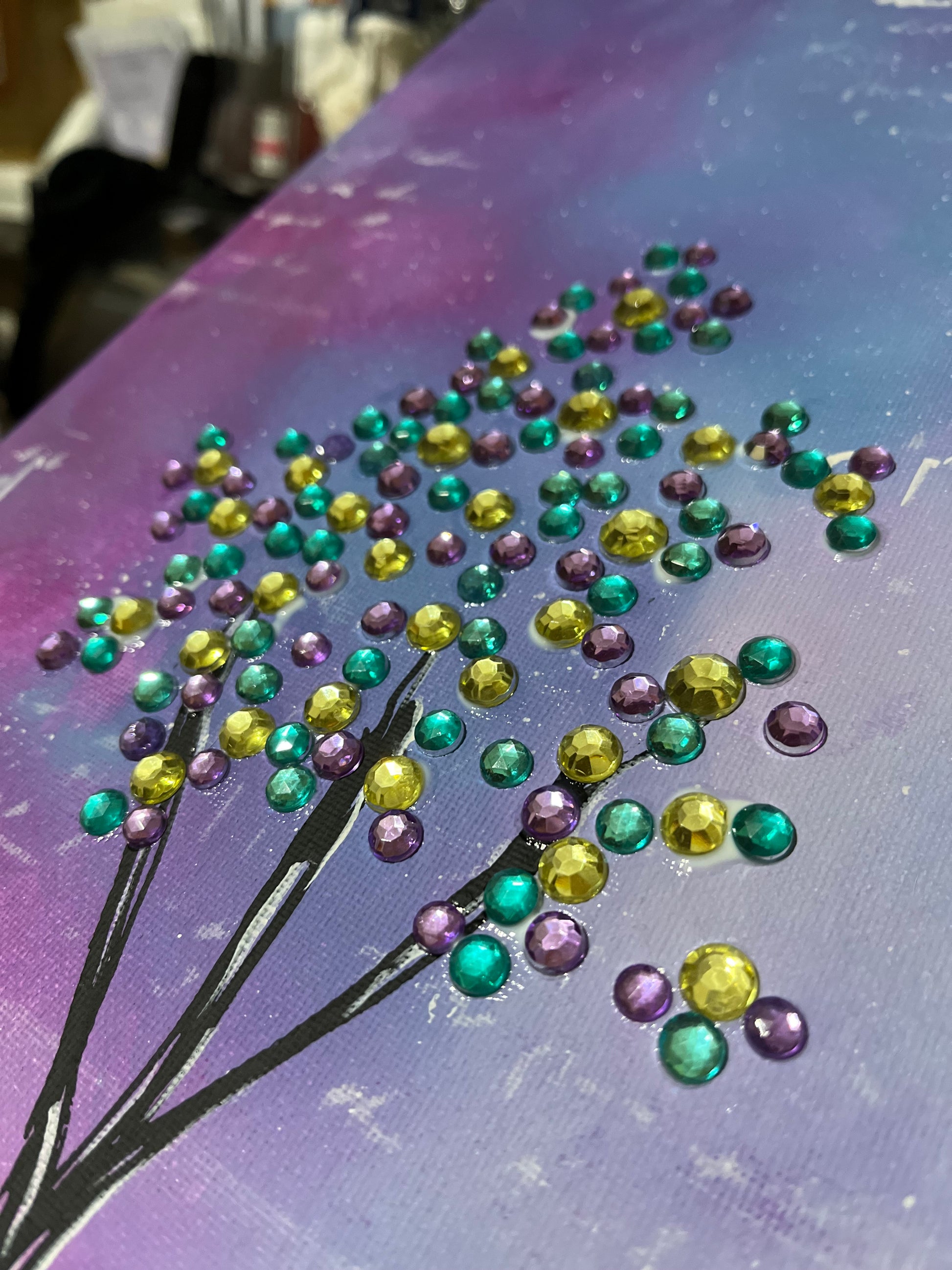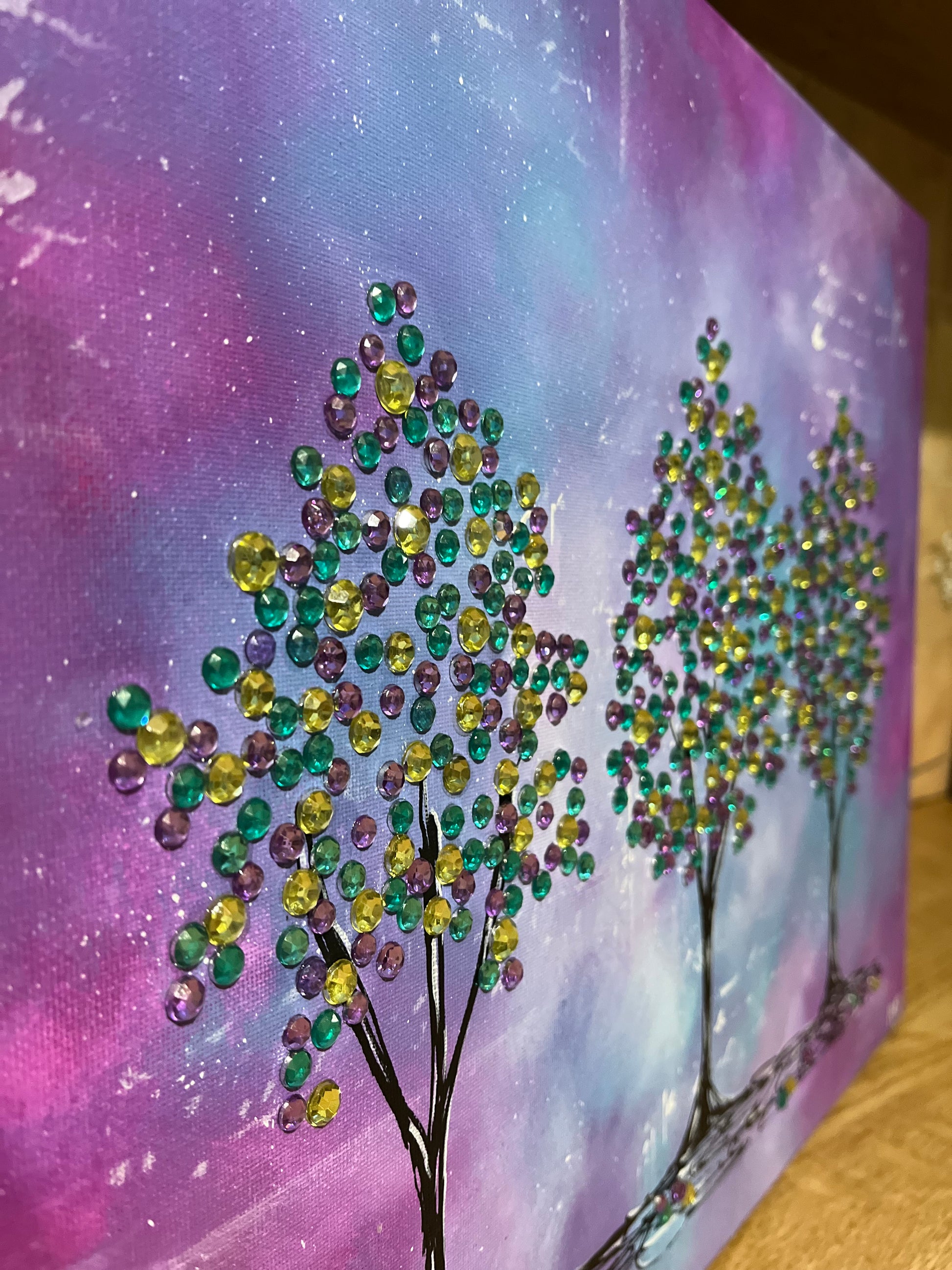 This beautiful painting was created using acrylics and rhinestones on a 40x50cm slim profile canvas.