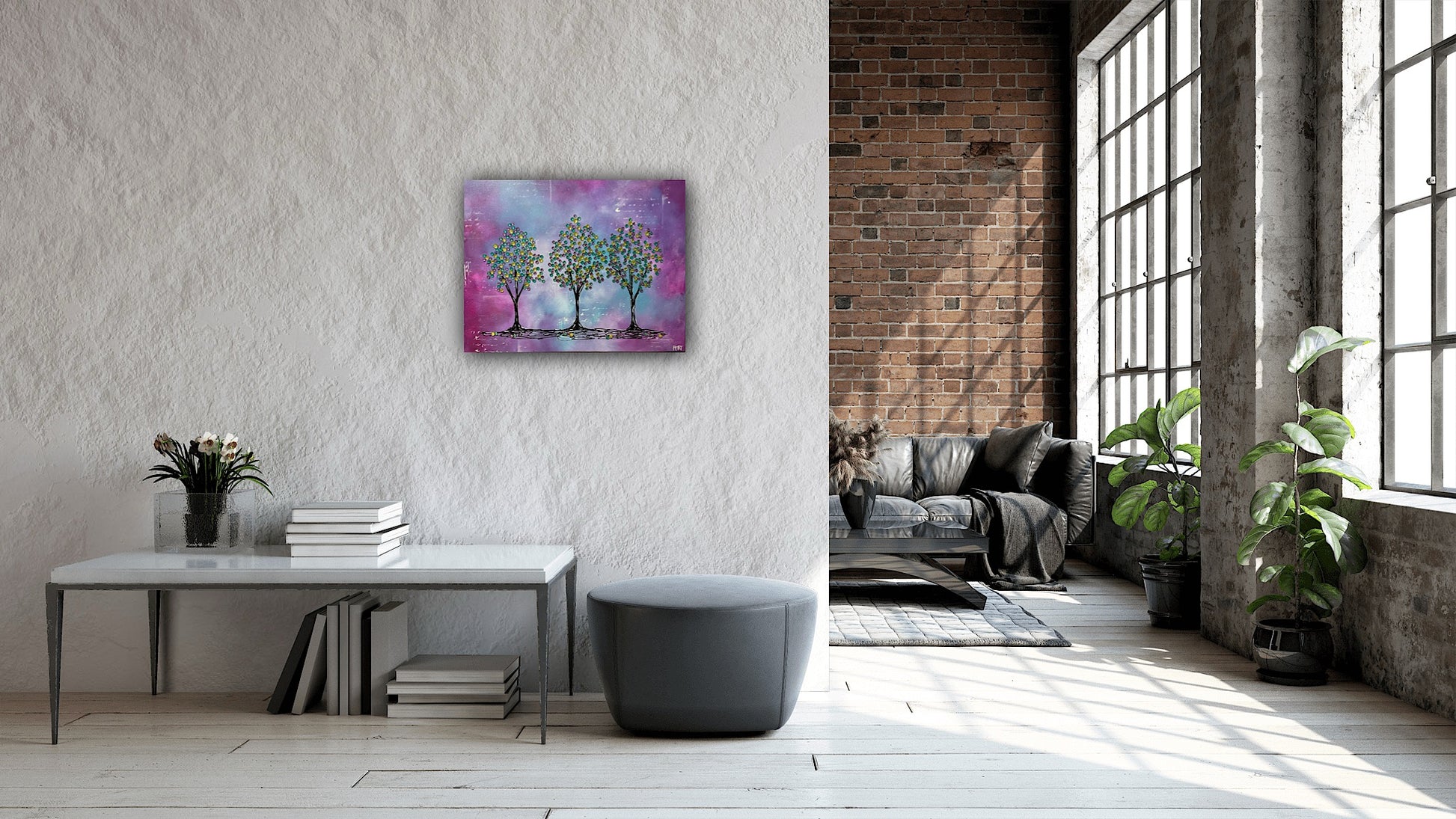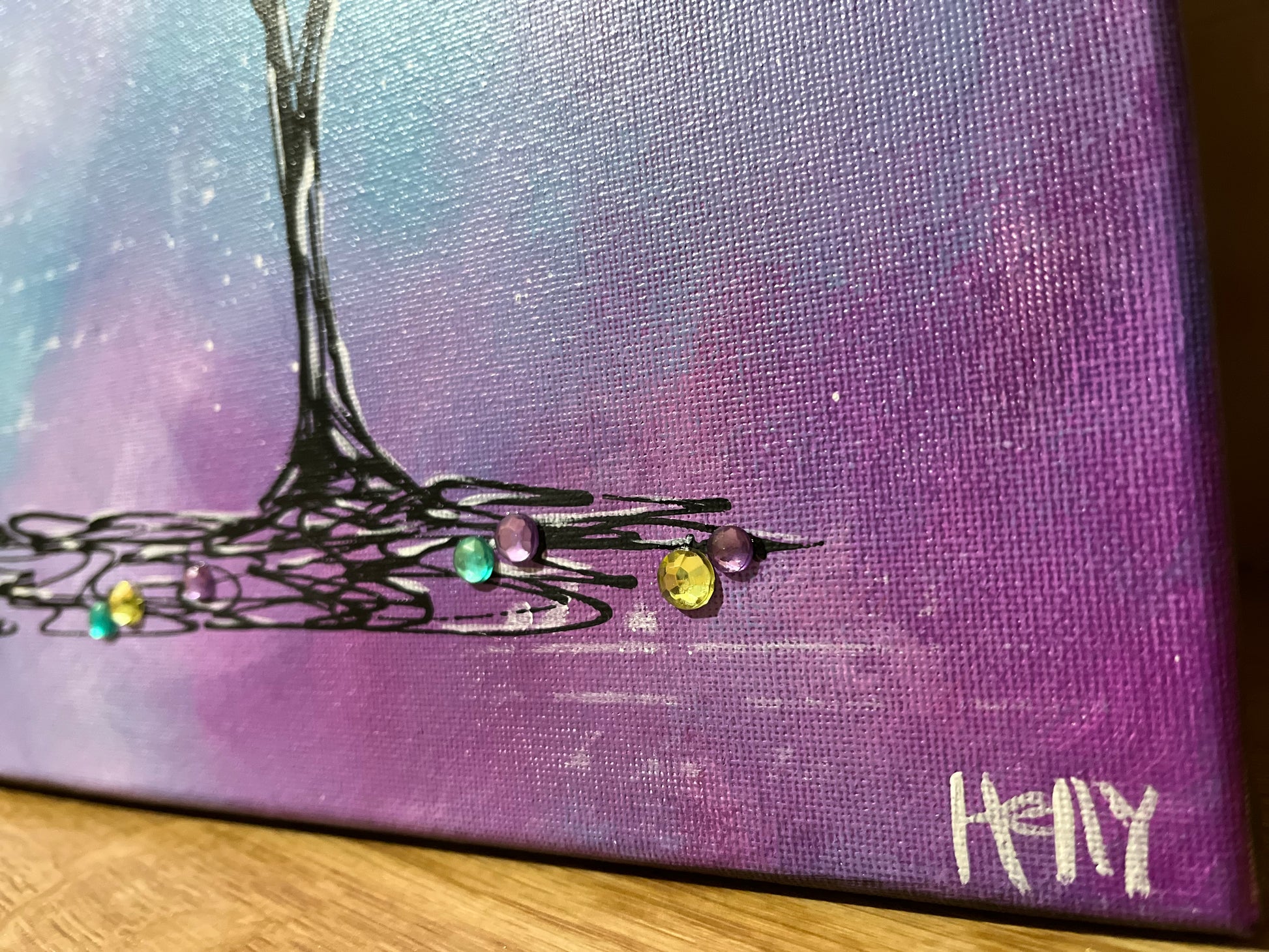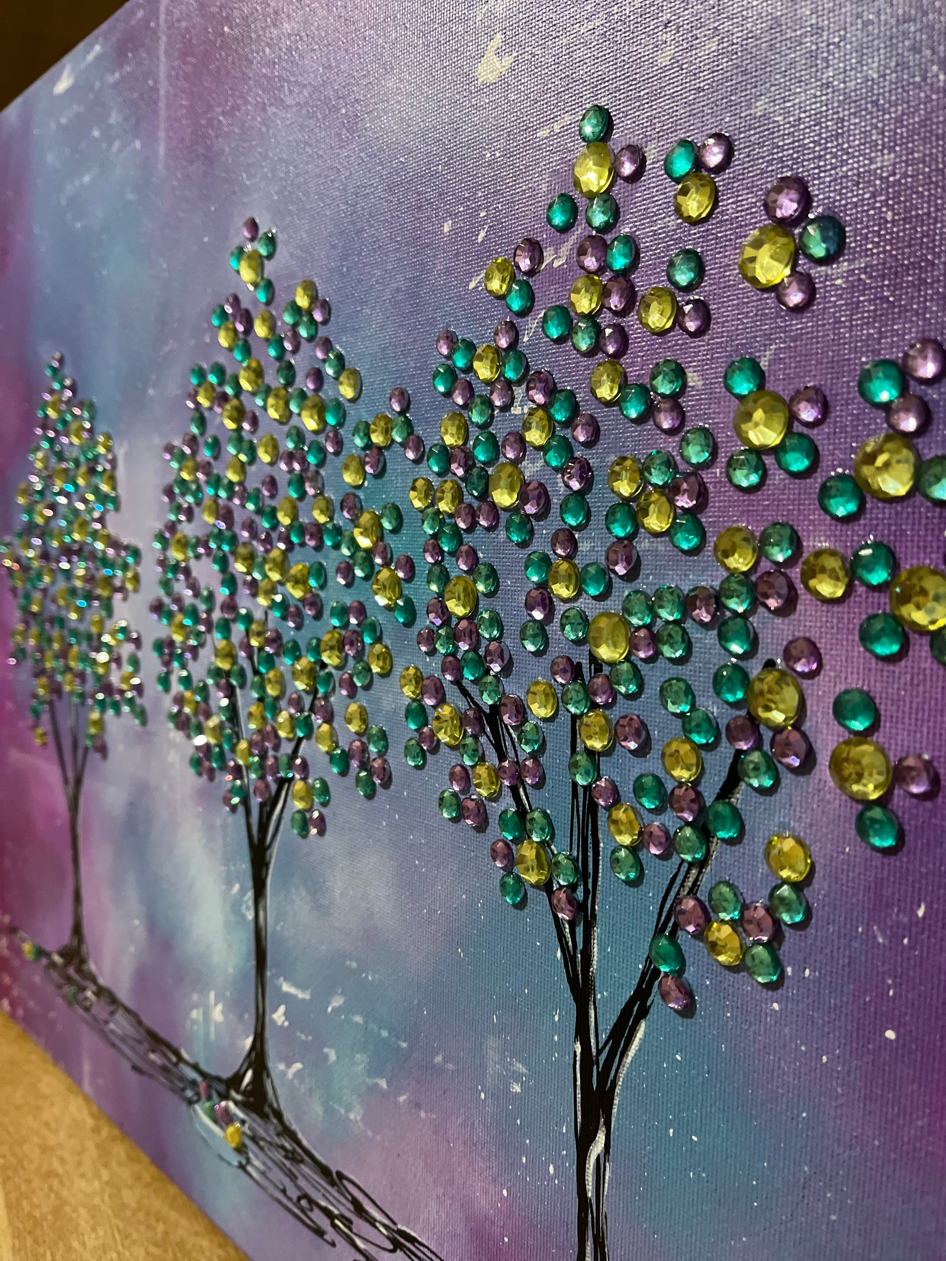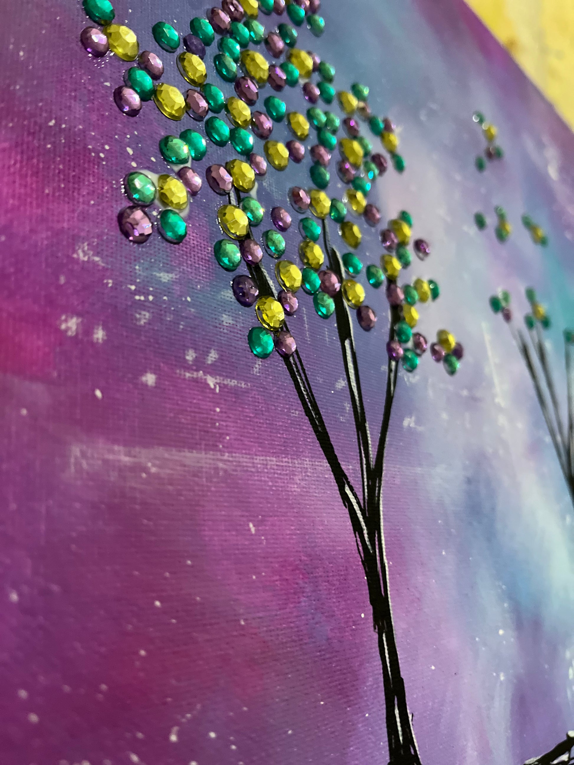 This beautiful painting was created using acrylics and rhinestones on a 40x50cm slim profile canvas.