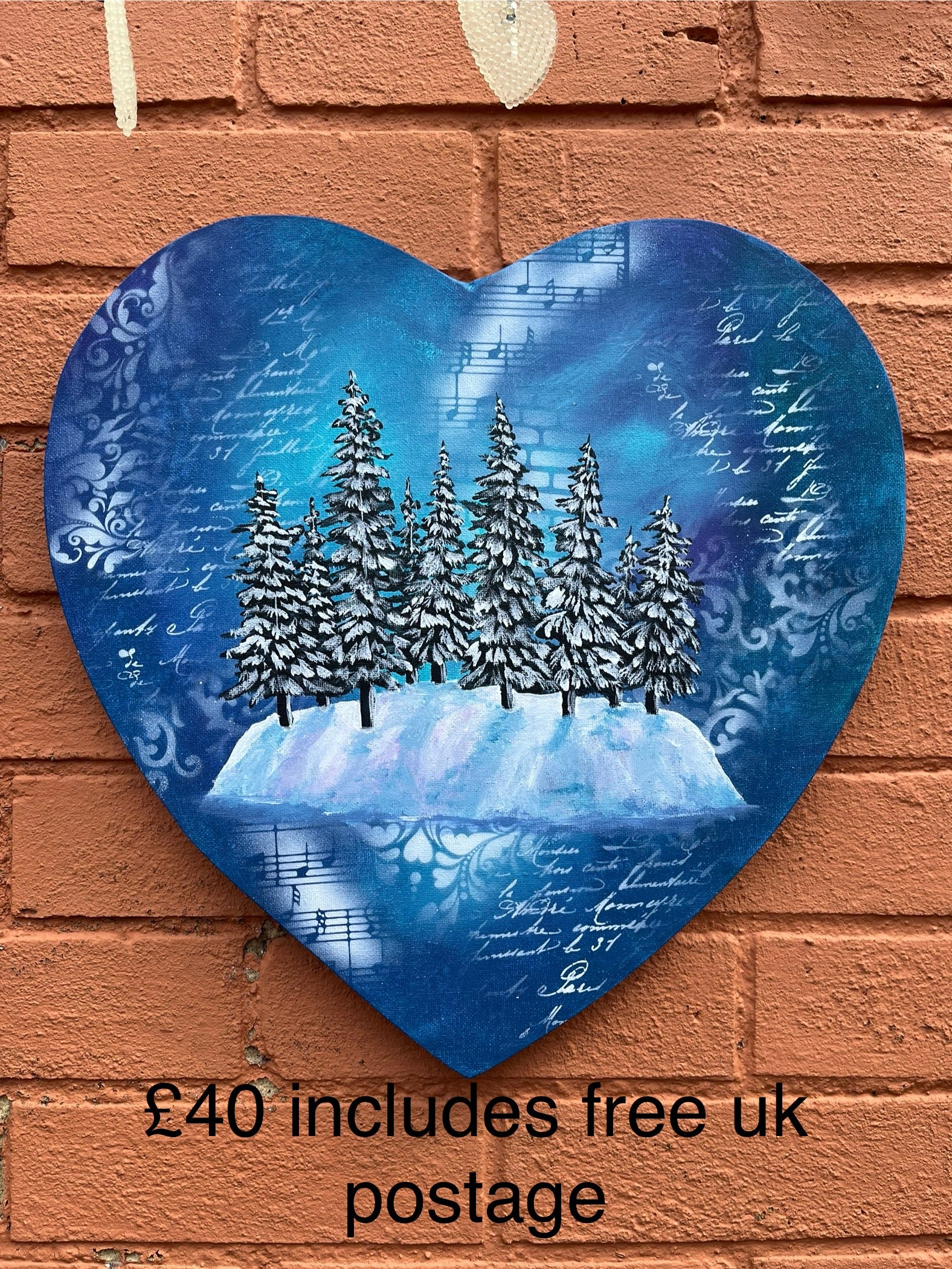 This painting was created using acrylics on a heart shaped 40cm canvas and is signed and will come with a certificate of authenticity and two layers of varnish.