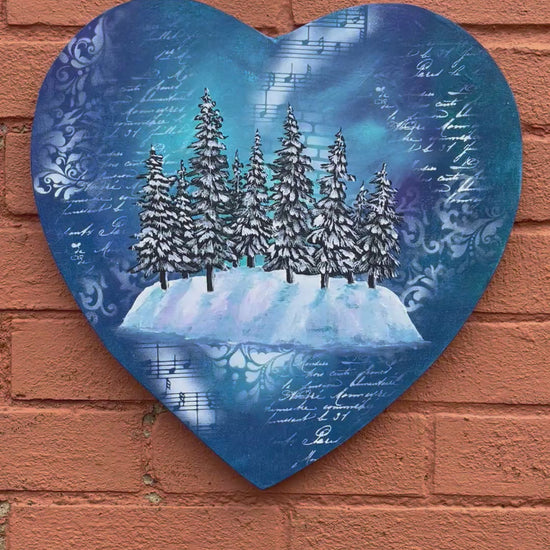 This stunning painting was inspired by my love of the Alaskan landscape in winter and the trees covered in snow standing tall despite holding the weight of the snow on their limbs.